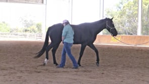 Helping this worried horse to relax and become more aware of us as we work on our grounding.